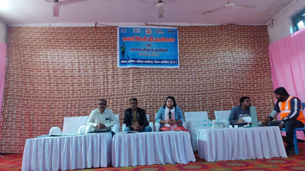 सामुदायिक भवन में स्वच्छता से जुड़े कर्मियों के लिए छमता वर्धन हेतु एक दिवसीय कार्यशाला का आयोजन किया गया था। जिसमे शहर की स्वच्छता में योगदान देने वाले सफाई कर्मियों स्वच्छता एवम इंसानों की आदतों से जुड़ी बातों को समझाया गया।
